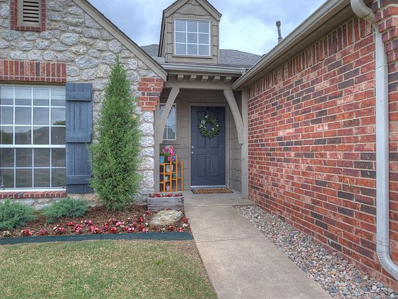 You'll love this beautiful 3 bedroom, 2 full bath home located in the Bixby School District! This home has an open floor plan:Liv room has vaulted ceilings & handsome frplc.The inviting kitchen has SS applic & breakfast bar. The spacious mstr suite has a lovely bath w his/hers sinks, closets & sep. shower w/whirlpool tub. New int paint, carpet & wood flrs. House has big lot that backs up to Five Oaks Lodge for a great view & country feel. Excellent neighborhood w pool, park & pond w wildlife. A Must See!