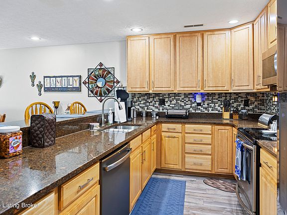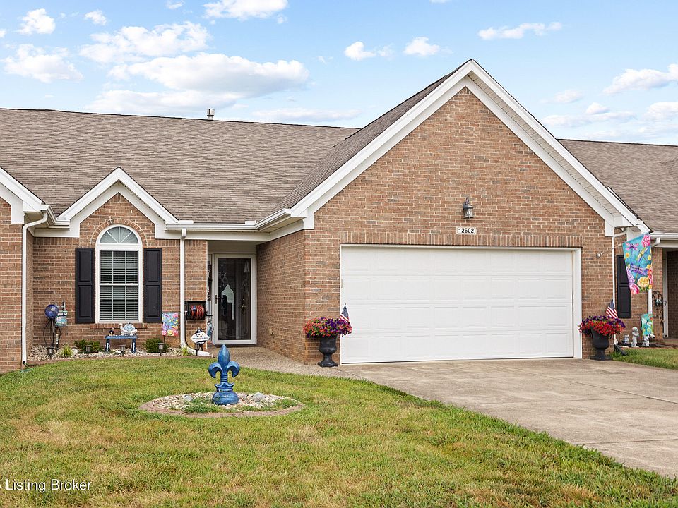 Beautiful 2 bed, 2 bath patio home in desirable Spring Meadows! This well-maintained home features a working kitchen with granite countertops, custom Amish cabinets, and a breakfast bar. The open-concept layout includes a dining area and a spacious great room with vaulted ceilings. The primary bedroom offers a tray ceiling, walk-in closet, and en-suite bath. Enjoy luxury vinyl plank flooring, and French doors leading to a private, fenced patio with an attached awning—perfect for relaxing or entertaining. The 2-car attached garage includes a pull-down attic for extra storage. Conveniently located right off I-65 at the Brooks Exit, this home offers easy access to shopping, dining, and more. Don't miss your chance to own this beautiful home in a fantastic location.