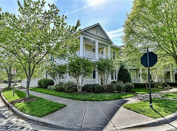 Rare opportunity to own the former model home renovated to modern glory. Located in the desirable Blakeney Greens neighborhood, this charming Charleston style home is walkable to the best shopping and dining in Ballantyne. Features include an open floor plan, built in surround sound throughout, 10ft ceilings on main level, gas fireplace, beautiful molding, new light fixtures, stainless steel appliances, granite countertops, walk-in pantry, wood floors/stairs and a wet bar butler pantry off of the recently updated kitchen. Relax in the oversized master suite with large walk in closet and bath with raised dual vanity, garden tub, separate shower & water closet. Boasts unbeatable outdoor living with a wrap around porch and balcony, large patio and fully fenced grass yard. This large corner lot comes with a two car detached garage and in-ground irrigation. The neighborhood offers a community pool, two parks, a walking trail and tree-lined streets. Make this stunning house your home!