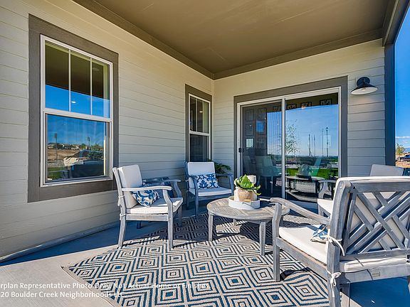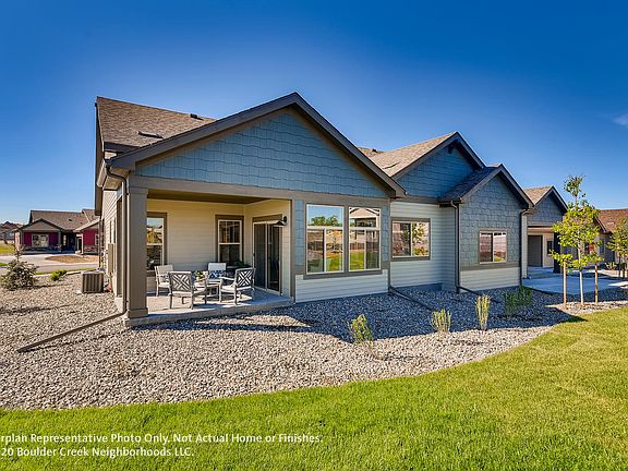 Low Maintenance, Main Floor Living by Boulder Creek Neighborhoods. This open floor plan is perfect for entertaining and features a covered front patio where you can enjoy your morning coffee while watching the sun come up. Enjoy minimal steps in this ranch style home that is all situated on one main floor. Utilize the over-sized two car garage to store bikes and other recreational gear. Thornton is a sought-after neighborhood that combines a "small-town" feel with convenient access to a variety of shopping centers and restaurants. Riverdale Ranch is a rare community that features several styles and sizes of homes that all fall under the low maintenance lifestyle. Home To Be Built. Photos of Model. Move in 2021