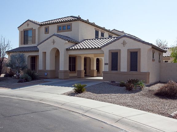 Wonderful newer home over 3000sf with neutral colors situated on one of the largest lots in the subdivision of Wigwam Creek North! Some of the upgrades include coffered ceilings in the formal dining room, upgraded stainless steel appliances, 42'' upper kitchen cabinets with kichen island/breakfast bar, large living and family room with separate formal living and eat in kitchen. Spacious master suite with an ensuite bath with jetted tub and a large walk in closet (all bedrooms upstairs), Large balcony off master includes electronic canopy. Prewired for surround sound & satellite, decorative security doors, Beautiful gazebo, propane firepit and water feature accent this large backyard which also includes an RV gate and an area for a garden. Home looks like a model! A Must See!
