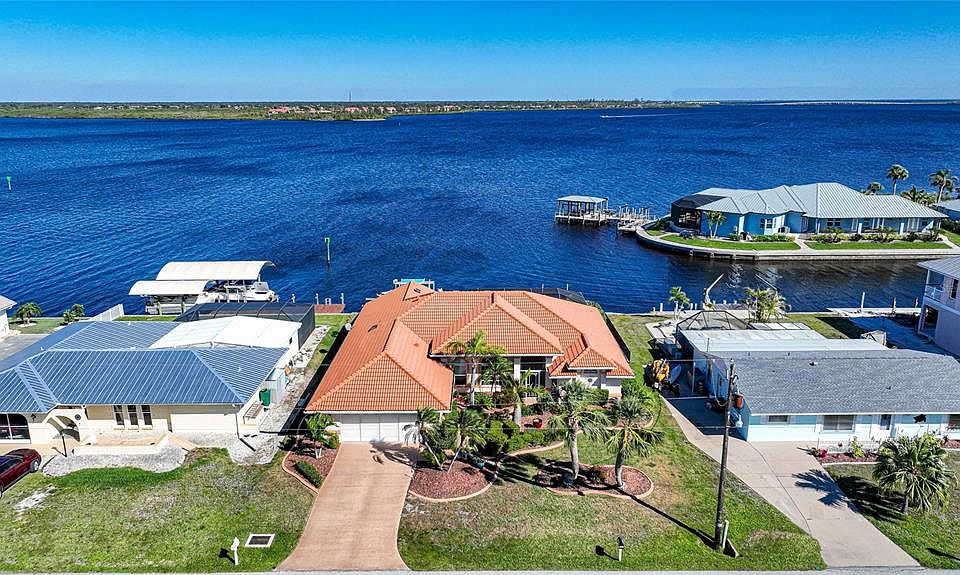 Paradise found! Wake up every morning to magnificent views of the Myakka River! With over 2700sqft under air, 4 bedrooms, 2.5 bathrooms, a 2 car garage, a salt water pool and spa and a 60ft dock with TWO boatlifts this home is ready for you! The tile roof was replaced in 2021! As you enter through the screened in front entry you are greeted with a beautiful view of the pool and the Myakka River! Soaring vaulted ceilings and large windows allow for a lot of natural lighting! The living room features wood plank tile, elegant crown molding, and french doors that lead to the lanai and pool. In the kitchen you will find beautiful wood cabinets and granite countertops. A wall of floor to ceiling pantries and an island provides ample storage. Stainless steel appliances finish the kitchen with an elegant flair. The dinette features large picture windows with a view of the Myakka River. The cozy family room features large picture windows overlooking the Myakka River with cathedral ceilings, and an electric fireplace. In the large master suite, you will find vaulted ceilings, french doors that lead to the pool area, crown molding, and dual closets. The en-suite bathroom features a large walk-in shower. Gorgeous marble countertops with dual sinks, a separate make-up vanity, and water closet. The guest bathroom and bedrooms are on the other side of the home. The bathroom has been updated with a walk-in shower with floor to ceiling tile, a vanity with a granite countertop and under mount sink. The 4th bedroom is currently being used as an office. Now on to the Showstopper! Out on the lanai you have nearly unobstructed views of the Myakka River through the panoramic view screen cage! The pool and spa were recently resurfaced with a pebble finish. Ready to jump in your boat? There is a 60ft dock with 2 Boatlifts! Call today for your exclusive appointment to see this Gorgeous home! Gulf Cove is not deed restricted and membership to the homeowners' association (POGC) is optional which cares for the community's private Gulf Cove Park and private member only boat launch on the Myakka River. Located minutes away from 776 and a short drive from Boca Grande, Englewood and Manasota Beaches, world class fishing, FIVE golf courses, TWO Spring Training baseball stadiums and variety of dining and shopping options! Call now before your dreams slip away!