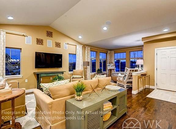 This low-maintenance Ovation floor plan will give you the ability to step away from tedious and time-consuming yard work. Spend your time doing what you enjoy; you are only a short walk away from the beautiful Eastlake Reservoir, and just down the street from a private Community Clubhouse with an outdoor pool. This zero step ranch offers everything you will need on one level, including an open floor plan containing a kitchen and great room perfect for entertaining. This home offers a flex area that can be left open to the great room or even converted into a "study". Encore patio homes at Eastlake are all about helping you be able to do the things that you love to do.. Step back on to the stage, it's time for your Encore.. *Photo's not of actual home