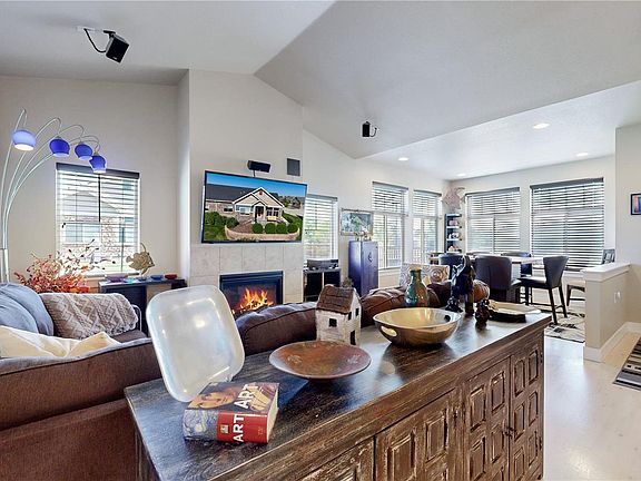 Enjoy contemporary zero-maintenance living in Eastlake Lifestyle Community. There is expansive open space in the main living area, soaring ceilings, hardwood floors, two bedrooms, and a custom art or office room. There are absolutely no steps coming in from the garage so perfect to roll in with ease and wheelchair-accessible doorways. The neutral palette ties together the main floor living and dining spaces, along with the inviting kitchen features granite counters, a stainless steel appliance package with refrigerator included. All the builder options set this home apart from the competition. Come see for yourself. Retreat to the primary suite, a huge space to enjoy with a 5-piece bath, and a large walk-in closet. Additional features of this home include wide laundry space with the washer and dryer included for the homeowner’s convenience and ample storage. New furnace installed January 2024 and New roof installed May 2025. The attached 2-car garage includes storage shelves galore. The outdoor living space is perfect for afternoon shade from the home. Lifestyle highlights include a vibrant community clubhouse with a pool, full kitchen, and regular social events like book clubs, game nights, movie nights and water aerobics. The Eastlake Lifestyle Community includes many green spaces, a short distance to nearby Eastlake Nature Preserve with tennis courts, scenic trails with incredible mountain/lake views, and wildlife.