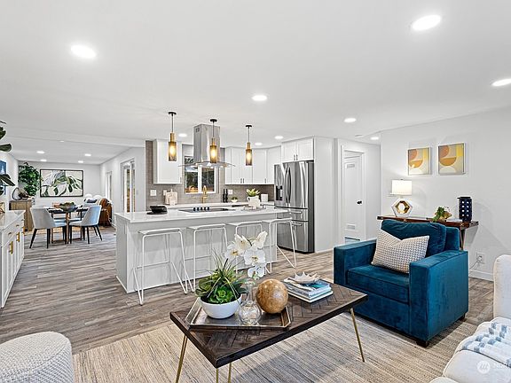 RARE RAMBLER! Highly desired Cascade rambler situated on a large fenced corner lot. Home has been completely remodeled inside and out! 1,800 square ft of beautiful wood-like flooring throughout offers easy maintenance. Amazing kitchen features new cabinets for ample storage options, quartz countertops, gorgeous brand-new appliances and a large entertainment sized island! Large cozy living room equipped with the perfect fireplace for chilly days and evenings. This well-designed home offers a great floorplan with elegant features. Not to mention, a private backyard along with ample parking for extra cars, RV and/or other toys. Conveniently located near shopping, parks and freeway access for easier commutes to Bellevue ands Seattle!