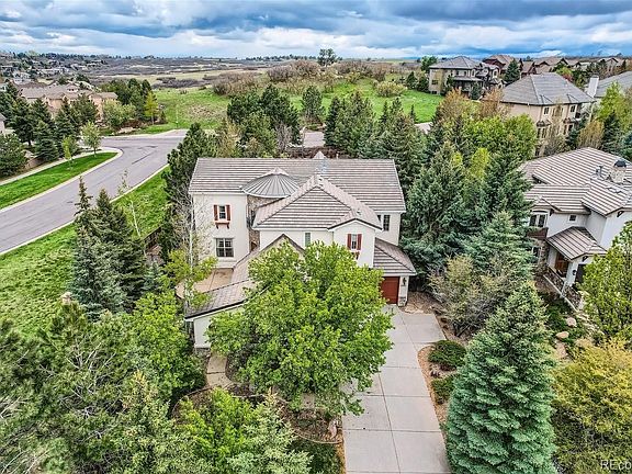 Welcome to this exquisite property nestled within the esteemed gated community of Castle Pines. This splendid single-family home boasts 6 bedrooms and 5 bathrooms, providing ample space for luxurious living and a 4-car garage, this residence epitomizes both opulence and convenience. Step inside to be greeted by a majestic curved staircase with wrought iron railing, and a beautiful chandelier which hangs from the towering ceiling, exuding elegance and sophistication. For culinary enthusiasts, the gourmet kitchen is a dream come true! Equipped with top-of-the-line stainless steel appliances, Viking double convection oven and gas cooktop, dual dishwashers, the large center island with quartz counters provides the perfect space for meal preparation and casual dining. Adjacent to the kitchen is a charming dining area, separated from the family room by a stunning two-sided stone fireplace. The primary bedroom serves as a tranquil sanctuary, complete with cozy sitting area with fireplace and custom built-ins. Indulge in the spa-like ambiance of the primary bathroom, adorned with beautifully tiled flooring, an independent walk-in shower with double heads, soaking bathtub, and dual vanities with ample cabinet space. The spacious secondary bedrooms are adorned with Jack and Jill bathrooms, and custom built-ins. Additionally, the loft area boasts its own set of custom built-ins, adding a touch of sophistication and practicality. The basement offers a partially finished space, including a cozy family room, an additional bedroom, and a well-appointed bathroom, providing extra versatility and comfort for your lifestyle. Step outside to the gorgeous private backyard oasis, where you'll find a built-in BBQ covered area and a captivating water feature, perfect for outdoor entertaining and relaxation. Also featured are upper and main floor laundry with sinks, wood, tiled floors, granite, water softners, dual furnaces & water heaters, and in-ceiling speakers.