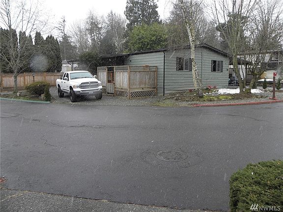 All Age Park in South Everett off 128th, Glenriver Mfg Hm, 1,394 Sq Ft, 3 Bedrm & 2 Bath. Fenced Back Yard, over sized shed/shop area, Heat Pump, New Roof, Interior/ Exterior paint & new Carpet. Corner lot so ample parking w/ circular driveway on one side & Driveway with carport on other. Covered deck on front of home. Interior features include walk in closet in Mstr. and 5 pcs. Mstr. Bth. and large utility room. Park amenities are Club house, R.V. Parking and common area. Finc. Avail ( O.A.C. )