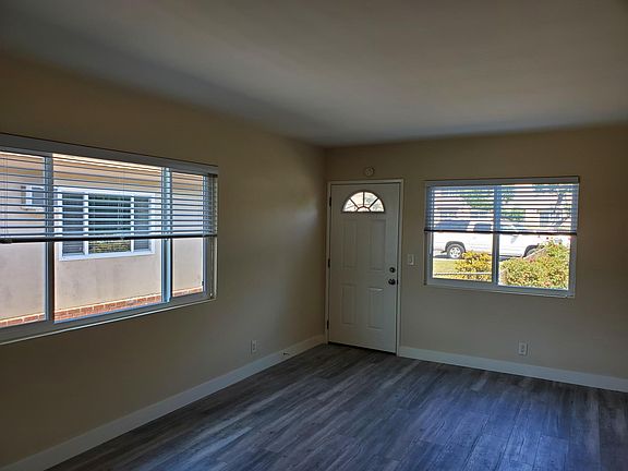 2 Bedroom, 1 Bathroom, front parking, covered patio with washer dryer hook ups and small yard. New laminate wood flooring in kitchen and living area. The kitchen is completely remodeled, with new paint, new wood cabinets, and new appliances. The bathroom is remodeled, with new tile, a new sink, and a new bathtub and shower. The carpet will be cleaned after rented. NO PETS, must have good credit and good rental history. View the home from 5:00 PM to 7:30 PM M - F. Owner pays for water and trash