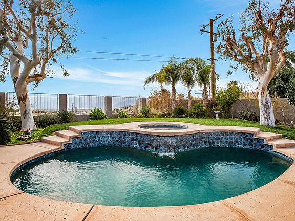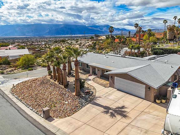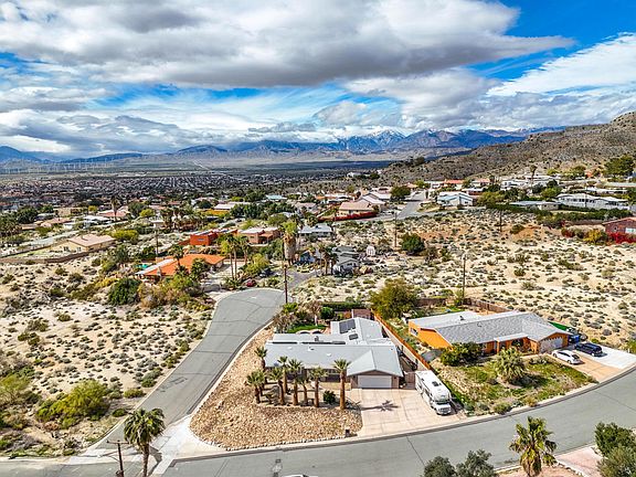 LOCATION.. Stunning Western Mountain View.. This amazing spacious 4-bedroom 3-bathroom home is just what you have been looking for. Meticulously maintained. Well cared for, updated, and upgraded this home is beyond ready for you. Mother-in-law suite with walk in closet & beautiful bath, separate water heater and a/c & heating unit, Suite is Opposite side of the home, has its own Slider leading out to the gorgeous, lush backyard. Tile flooring in main rooms, carpet in bedrooms. Salt Water private pool and spa. The kitchen is spacious with new cabinetry, Quartz Counter Tops, double Ice maker frig. ! The living area is super spacious with a nice fireplace making it feel cozy... NEW window/Sliders, Roof (2015), NEW Heat pump (2022), Separate laundry room with plenty of storage, The backyard has beautiful, lush grounds offering endless room for friends and guests to lounge! Big views of Mount San Jacinto. Perfect outdoor way of life expected in the desert. The 2 car garage and driveway space provide plenty of parking for big families or large groups. Solar (leased).Corner Lot... So much more... This is a must see home. Easy to show.. Its a GEM!
