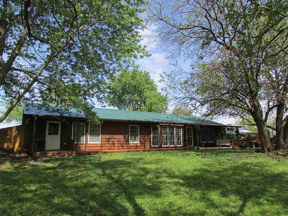 Country living at its best. One owner, very comfortable 3BR, 2ba, 1 car det gar on 14 ac m/l, close to Topeka, open floor plan, home well taken care of, lg rooms, nice covered front porch, storage bldg., lots of wildlife, beautiful setting. All appl stay, newer windows, laminate flooring, walk in pantry.