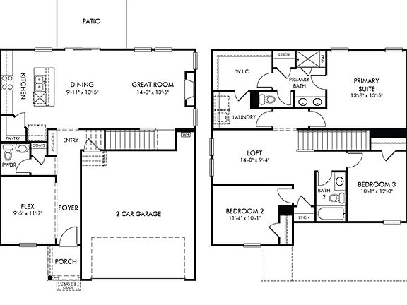 Let the kids play in the loft while you entertain on the open-concept main level. First floor flex space makes a perfect home office. Slate cabinets, marble-look white quartz countertops, maple wood flooring and beige tweed carpet in our Fresh package.