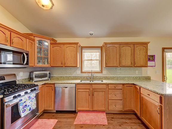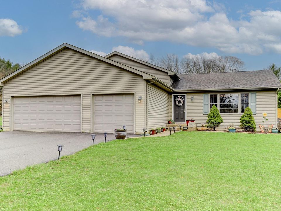 Stop the Car! This huge almost 2000 sf. tri-level on 1.15 acres with 4 bedrooms, 2 1/2 baths, 3 car garage, and a dry 4 ft crawl is sure to please! Through the front door you are greeted by a warm sunny living room, w/ vault ceiling, open to a gorgeous eat-in kitchen with wood floors, granite counters, tile backsplash, plenty of cabinets, and slider to HUGE fenced yard w/ shed. Upstairs you'll find the beautiful main bedroom w/ full bath, and walk in closet, 2 more good size bedrooms, ANOTHER full bath and a linen closet. Fresh newer laminate flooring graces the lower level big rec room w/ cozy pellet fireplace, and 4th bedroom, with huge long w/in closet. Also on this level is a huge utility/laundry room with 1/2 bath, door to 3 car garage and small door to 4 ft DRY crawl for great storage! 2 x 6 construction and 6 panel solid doors! Nothing to do here but move in! Peace and serenity await!