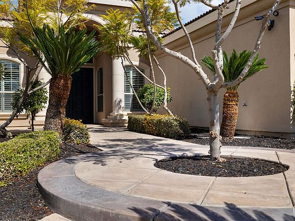 Prestigious Seven Oaks-Grand Island! Immaculate 5-bed, plus media/game room, 3-bath home with 3-car garage. Every detail designed to impress: crown molding, trayed ceilings, raised panel cabinetry, split-wing floor plan. Stunning exterior with window casing, acrylic stucco, elegant molding. Equipped with video surveillance, central vac, media room ready for projector/screen. Ample storage with multiple closets. Gourmet kitchen boasting island sink, stainless appliances, dual ovens, granite counters. Cozy family room with stone fireplace, built-in entertainment. Primary suite with sitting area, luxurious bath, separate shower, oversized spa tub. Hallway bedrooms with extra storage, ceiling fans, tray ceilings. Backyard oasis: covered patio, dazzling pool with play pad, water features, removable safety fence. A true masterpiece of comfort, elegance, security -Make this dream home your reality today!