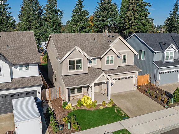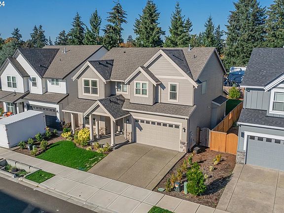 Like-new construction in this beautiful Oregon City home in amazing neighborhood. Extra large, level backyard fully fenced with covered patio. High ceilings throughout; high-end laminate flooring. Great room floorplan with kitchen with quartz counters, stainless appliances, pantry and eating bar. Main floor office/den. Primary suite with French doors, coved ceilings, suite with soaking tub, tile shower, double sinks, walk-in closet. Spacious bedrooms. Upstairs laundry with storage and sink. Buy like-new condition but not at the new construction prices! Amazing location!