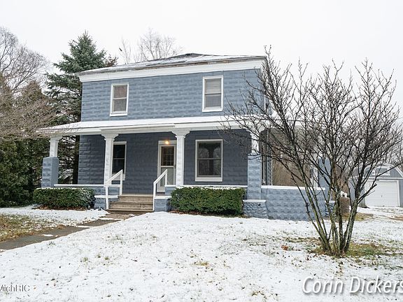 Don't miss out on this turn of the century charmer! The first thing you'll notice when you pull up to this home is the stunning front porch and elegant masonry exterior. Home is located on a beautiful, deep lot that measure just shy of an acre and feel very private. Around back is a huge deck with a sunken hot tub to enjoy the view. Step inside and be wow-ed by the freshly remodeled kitchen with included, brand new, appliances! A convenient min floor bath and laundry is located right off the kitchen too. Wander further inside and you'll find a large living and dining space with tall ceilings, pellet stove, and two spacious main floor bedrooms. Upstairs you'll find a huge open loft, second full bath, two large bedrooms, and a small non-conforming room which could make a great
