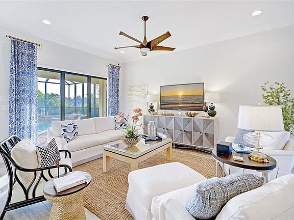 Behind the gates beauty in Harbour Landings. This John Cannon custom home is a waterfront classic.. Showered in natural light with luxury and exceptional finishes like wood plank-tiled floors, soaring ceilings & detailed crown moldings. Designer Furnished by Tanya Burley Design. A timeless and stylish design that compliments the outdoors and sparkling marina beyond the doors. You will enjoy the wonderful views captured throughout the home and pool area. The floor plan covers 2,625 sq. ft with 3 spacious bedrooms, 3 luxurious bathrooms, a large bonus room, office behind french doors and an open concept kitchen that flows into the great room & dining area. It is a chef's dream kitchen that shines with granite countertops, nutmeg cabinetry, stainless appliances including a Wolf cooktop, warming drawer & prep sink. The large master suite offers an oversized frameless-glass shower, dual sink areas and walk-in closets. Guest rooms are most generous in size as well. This home is built to last with an extensive list of upgrades; Decorative impact windows & garage door, heated/salt-water pool & spa with ScreenLogic interface, outdoor kitchen, gas tankless water heater, programmable thermostat, Moen fixtures, enclosed gardening or pet area, pre-wired for home automation & theater, security system with cameras, private dock and 8,000 lb. boat lift on private marina. This home is in a prime location behind the secured gates of Harbour Landings and only minutes to the sandy beaches and gorgeous blue waters of The Gulf of Mexico. You will also enjoy the best unique restaurants, shopping, local events and treasures this area has to offer. Welcome to Paradise!