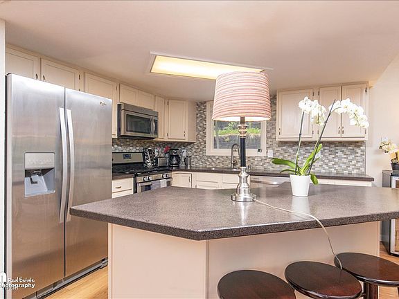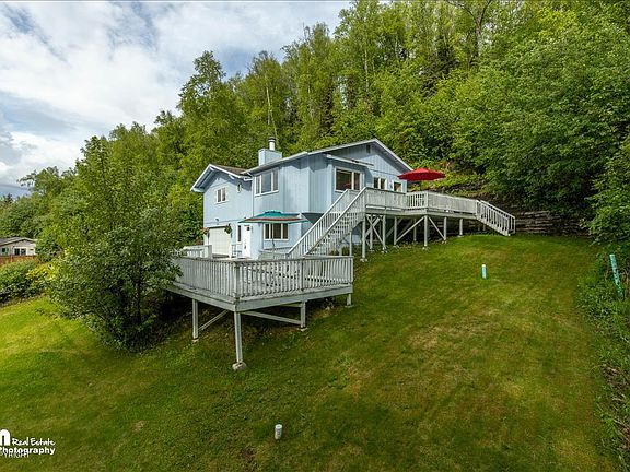 This beautiful home is perched on more than 1/2 an acre & backs up to a tiered green oasis! Home boasts a convenient open living area with lots of light, many updates & a huge, tiered deck that is great for entertaining! Enjoy your summer! Abundance of parking for all your Alaskan toys. Mother in law potential. Brand new flooring. Take in the seclusion of this private setting yet so close to town!