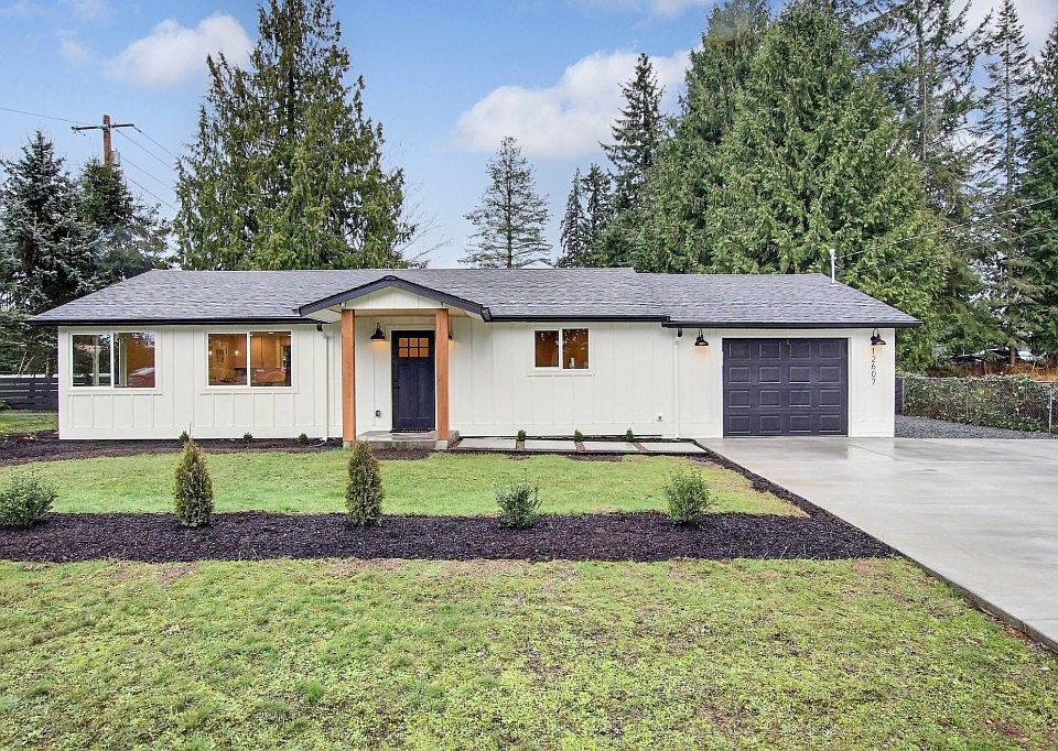 Location, Location, Location! Newly remodeled 1040 sq ft rambler on a level, 12,632 corner lot with a finished garage! Huge lot may allow for ADU- buyer to verify with county. Taken down to the studs, the only 3 things not replaced-foundation, frame and two walls of siding. Close to freeways, Mill Creek Town Center, schools and stores.