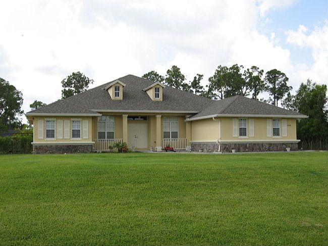 All the Bells and Whistles for this lovely home. Royal Wall construction. Tiled roof. Paved Driveway w/side entry garage (3 car). Fully fence lot and pool area. Screened lanai. Storm Shutters. 45kw whole house generator serves house, pool, wells. Pool is heated w/ fountain, salt water chlorinator and fiber optic lighting. 2 wells- one for the house and one for the sprinkler system. Kinectico Water filtration system. 10 X 14 Shed. Satellite dish. Security system. Exterior lighting. Gutters. hose bibs on all sides. Home is positioned on the lot to accommodate 1000sf guest house in the future- Sellers have plans drawn. This home is only three doors away from paved road. Interior features include Br, 2ba, plus a den/ could be a fourth bedroom. Double door entry, large foyer, 18" tile throughout entire home, 3 sets of french doors leading to the patio/pool area. Custom verticals and honey comb window treatments. Master Bedroom/bath features two walk in closets, dual sinks, roman tub and step down shower,cherry cabinetry. bedroom # 2 has walk-in closet. Family room has tray ceiling and decorative plant shelving. Kitchen features 42" cherry oak cabinets, desk, large pantry, flat top stove, 22 cu ft refrigerator w/ ice maker and drawer freezer. Breakfast bar and breakfast nook. Interior laundry room has laundry sink and upgraded washer and dryer. 3 car garage with auto garage door openers and pull down stairs to the attic. Separate 200 amp electric for the pool.