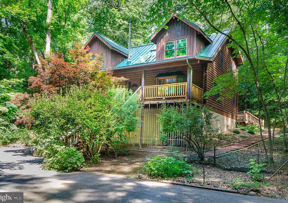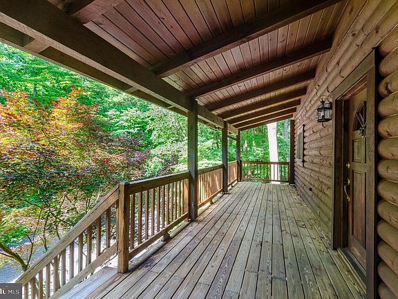 Private and Pristine in a Parkland setting! This fabulous log home is priced less than its tax assessment but boasts upgrades galore including a generously sized front porch, metal roof (with a lifetime guarantee) and geothermal heating and cooling to ensure comfort year round! The owners have lavished love on this home spending over $150,000 in the last 1.5 year. Improvements include not only the 4 ton geothermal system and green vertical seam metal roof but also a renovated master bath (heated tile floors, new vanity, frameless shower doors, new tile etc), new front windows, new half bath in basement, fresh paint and more! High ceilings on all three levels, skylights and open beams plus a sprinkler system. Propane gas tank to fuel gas cooking on burners! Huge two level deck (complete with built in benches) provides a wonderful location for entertaining a crowd al fresco. Enjoy the privacy of your own woodland preserve with 4 acres (about half of which is subject to a Maryland National Capital Parkland Planning Commission conservation easement). The current owners have thoroughly enjoyed the easy access to their own walking/riding trail in the woods! This farmette is a birdwatcher's haven where turkeys, owls, hawks, pileated woodpeckers and more are frequently seen or heard. Pick your own raspberries in May-June Trees include many Redbuds, Dogwoods, Crepe Myrtle, Japanese Maple and Holly. Other plantings include sweet smelling Viburnum, Camelia, Rhododendron and daffodils. A private Oasis sure to please the most discerning buyers.