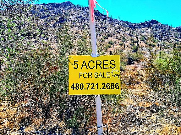 No HOA. 5 acres and totally offering 5 parcels of land each separately. All Parcels have access and buildable locations. Custom Homes under construction on adjacent parcel.... A potential Mansion is directly across the street where they have broken ground. Why drive to Camelback Mountain when you live on ONE? ACROSS THE STREET there is a 10 SQUARE MILE MOUNTAINOUS PARK for hiking and horse riding? These great properties are nestled in the Palo Verde Mountain Foothills in the middle of this stunning Mountain Pass! It is a Great Investment Opportunity to buy now and build your dream home(s) or hold for the future. The parcels are well marked with White Poles- and 3 fronting Hidden Valley Highway. Adjacent 2.5 acres is: $187k with electric only 300' away.
