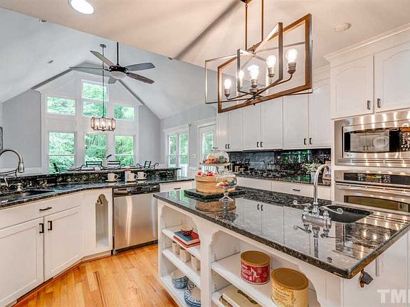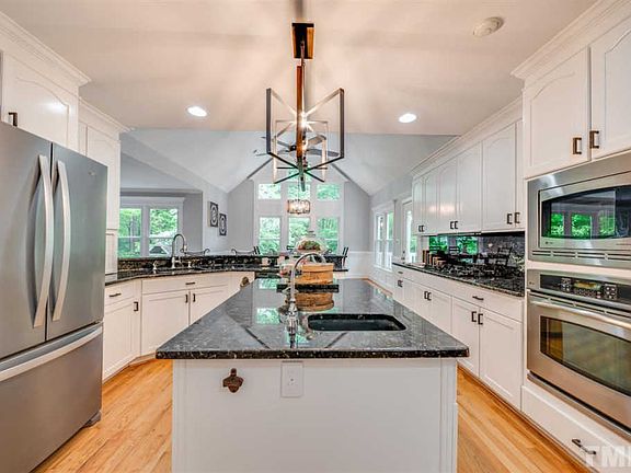 Beautifully updated executive home on secluded 2 acre lot minutes from RTP, Brier Creek and RDU. Stay home and enjoy movies in the home theatre, entertaining with multiple fireplaces, relax or grill out on one of the porches, living it up on the play set, shooting hoops on the basketball court, working out in the home gym, evenings & weekends around the firepit or soaking in the master bath jacuzzi tub. Huge basement workshop and fantastic custom storage spaces. New siding, roof, HVAC, septic and well!