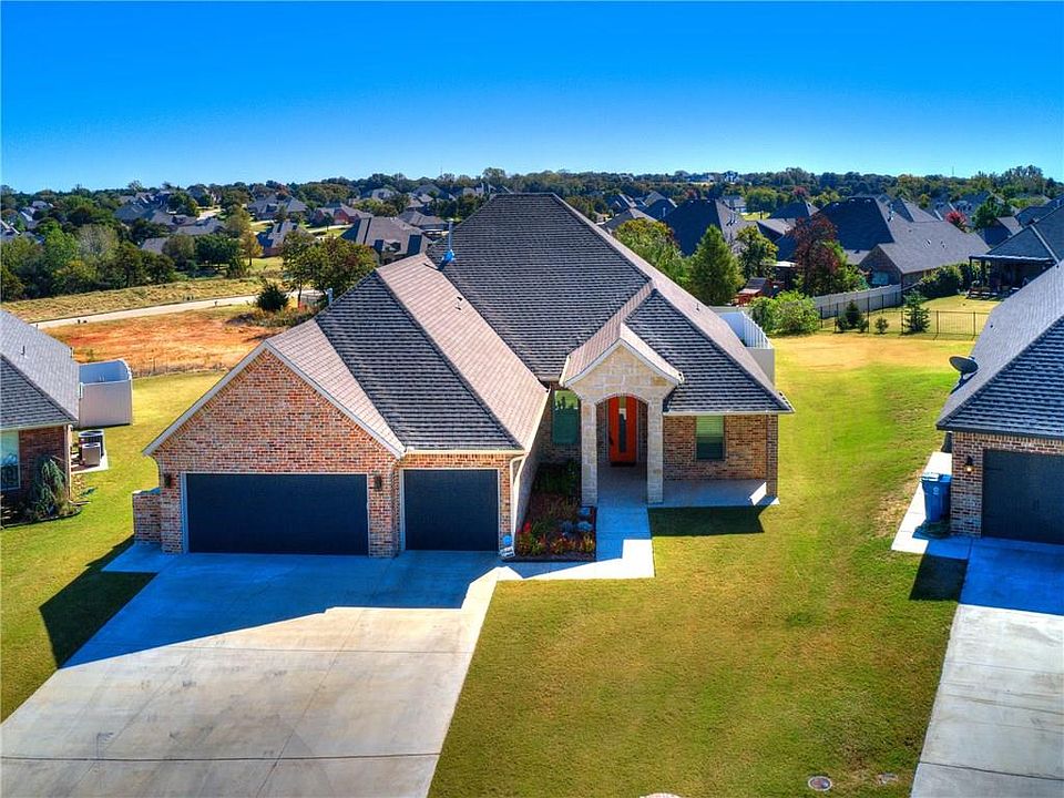 Glamorous home in a Gated Community, just minutes from I-40, Boeing & Tinker. Custom built completed in 2018, with 4 bds., 3bthd + Office. You'll find luxurious and modern finishes throughout the home, Feng Shui design oriented to create a relaxing atmosphere. Kitchen offers ample counter space quartz counter tops, under mount sink, stainless steel appliances with gas range and custom cabinets. Designer Roman shades in the living and dinning area (a couple with remote control) for the windows and deluxe wood blinds through the rest of the house. Master bedroom has enough space for large furniture. Fans with light features and remotely controlled. With a LED lighted vanity mirror, panel shower and Whirlpool Bathtub, the master bathroom. Laundry room offers great storage & a mud bench with cubbies. Storm SHELTER in the garage. Backyard surrounded by Vinyl Fencing with decorative top that is 5 times stronger than wood, requires minimal maintenance. Neighborhood trails and pond.