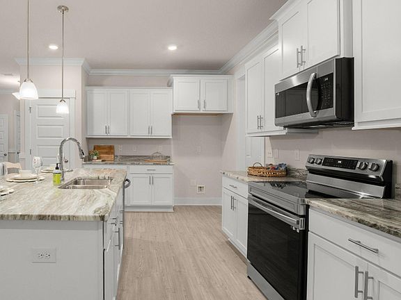 Under Construction-Cottage Series - 2-car front entry garage, 3 bedrooms, 2.5 baths, eat-in dining and study. Laminate flooring in main traffic areas, ceramic tile, 9' ceilings, trey ceilings in great room and MBR, tile shower w/ frameless glass door, tile tub surround, double vanity with quartz tops in MBR bath, granite tops in kitchen, stainless kitchen appliances including gas range, microwave, dishwasher, disposal.