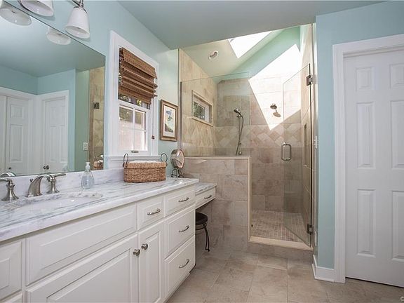 Beautifully updated 5 Bedroom Colonial situated on a rare private lot adjacent to Tuckahoe Creek. First level features hardwoods throughout, updated kitchen with under cabinet lighting, skylights and private wooded views. Additional rooms on the first level include a spacious dining room, a living room/music room, updated half bath, mudroom, light-filled sun-room and a large family room with built-ins, gas fireplace and wet bar. Access the fully hardwood second level by either the front or rear staircase. The master includes a newly renovated bathroom with custom closet. There are four additional bedrooms, two are connected by a beautifully renovated jack and jill bathroom. Completing the second level are an additional full bath and laundry room with utility sink. The finished third level with built in cabinets and granite-topped desk/workspace offers endless possibilities as an office, playroom or workout space. You'll love entertaining on the oversized deck with outdoor speakers and string lights. Enjoy the lovely low maintenance landscaping and peaceful surroundings!