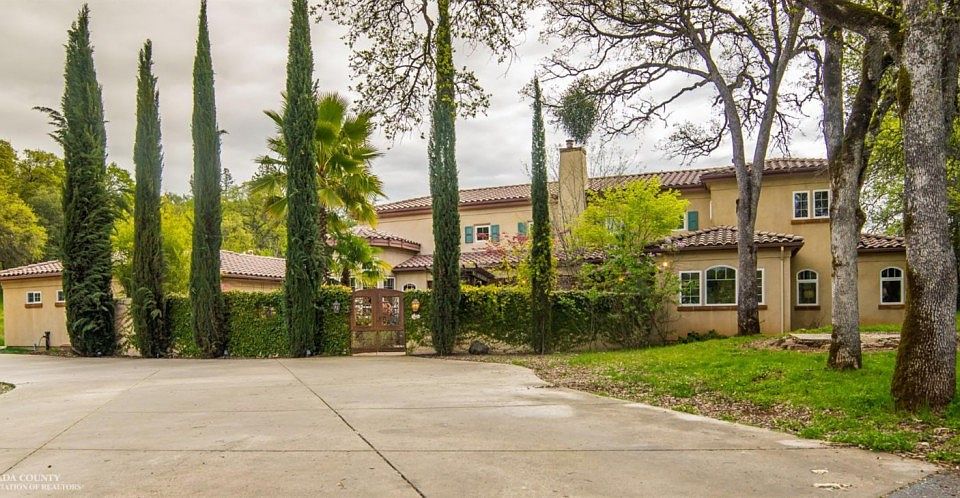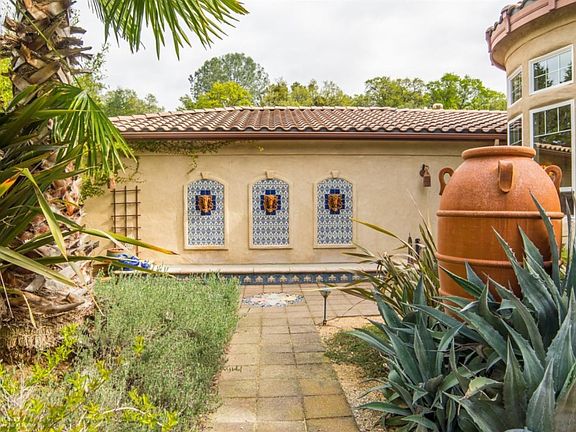 Stunning Mediterranean/Santa Barbara style custom home designed by renowned architect, Michael Kent Murphy situated on a gorgeous 36.38 acre parcel with unobstructed Sierra snow-capped views. The gated entry leads to lovely landscaped grounds and a enclosed courtyard with fountains. Finest quality amenities in every room. Entertain in your chef's kitchen open to a great room with soaring ceilings and custom beams and corbels. The dining room has a hand-built coved ceiling with hand painted scrollwork. Front and rear loggias. Attention to detail; no expense spared. Fenced, cross-fenced, built-in heated pool, outdoor kitchen, fully permitted 3 stall barn, hay storage and tack room, outbuildings for storage, and an 1800 sq. ft. house,3 bed, 2 bath with carport for extended family or caretaker. Private and quiet, yet only minutes to shopping, schools, and Starbucks! This is a one- of-a kind estate not to be missed.