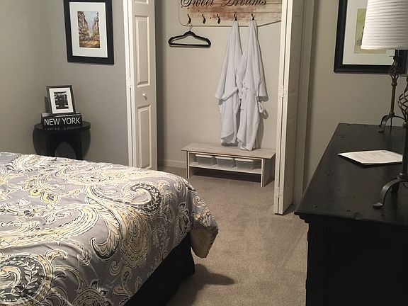 Floor to ceiling remodel in 2016. New air conditioner and furnace 2017. Lots of upgrades including real hardwood floors, patterned stair carpet, Nest thermostat, stainless appliances, LED light bulbs through out, levered door handles, carrera marble fireplace surround, and extra garage storage. Interior lot location w/nice patio and fenced outdoor space. Newer roof and garage door. No popcorn ceiling in this home! Large rooms with decorator grey color scheme. Both bedrooms upstairs with private baths. All bathrooms have beautiful upgraded granite. Solid surface kitchen counter and sink. Lower level has a wet bar w/area for office or non-conforming bedroom. Bonus -Refrigerator, washer, dryer, dishwasher, and stove stay! Non-smokers and no pets. Highly desired two car garage with keypad entry. HOA pays for water usage, swimming pool, lawn care, gutter cleaning, snow removal, trim paint, and evening security patrol.
