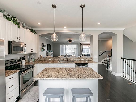 through out and newly painted 3 bedroom plus a loft area. 2.5 bathrooms 2.5 car garage in Westchase. This home is block construction throughout so noise is minimal. Kitchen has a sit at bar and island with a double door to balcony as well as a pantry. Walk in closet in the master with plenty of storage. Only 10 min to veterans express way. Excellent rated schools. Community pool, walk to local businesses within Hampton Lakes community like gym, grocery store, yoga, restaurants, bank, etc. This community backs up to the middle school and is in the Sickles area. Water and trash are included in rent. For a quick response text or call