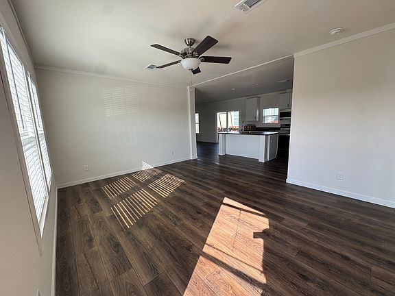 This beautiful new 2025 3 bedroom and 2 bath home just arrived at our community! It has two spacious living rooms that are connected by the modern styled kitchen. The primary bedroom has a walk-in closet and the primary bathroom with a his and her sink. Come view this home soon! Open House on Saturday, May 3, 2025!
