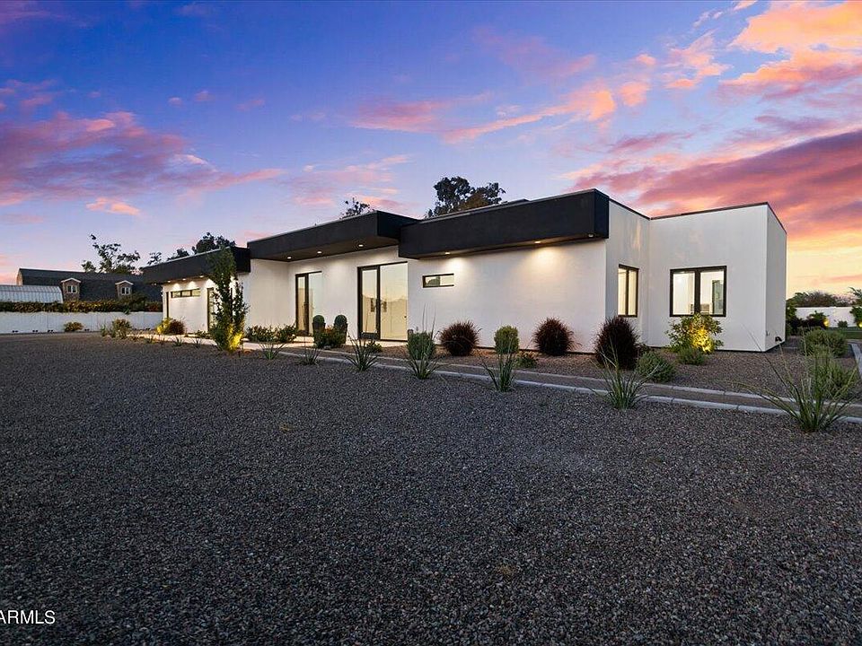 Welcome to your dream contemporary home, a stunning example of modern living blending seamlessly with comfort and luxury. Built in 2022, this exceptional property offers a spacious 4,790 sq ft of interior living space with an additional 900 sq ft detached casita with separate bedroom and full ensuite set on a 1.25 acre beautifully landscaped lot that emphasizes both privacy and open spaces. Entering the property through a secure gated entrance, you're greeted with an open concept kitchen and living room area, designed for both entertaining and everyday living. The kitchen is a chef's delight with two dishwashers, commercial-grade appliances and expansive center island. The home boasts 4 bedrooms and 4.5 bathrooms, including a luxurious primary suite with a steam shower for ultimate relaxation and each of the other bedrooms offering luxurious en-suite bathrooms. High 20-foot ceilings and commercial-grade windows flood the space with natural light, enhanced by automated window treatments for privacy and comfort. A Savant smart home system places control of the home's features at your fingertips. The home is also equipped with a whole home water filtration system. Additional amenities include a game room, an office for those work-from-home days and a bar for entertaining. The living space extends effortlessly outdoors thanks to wall-to-wall glass doors, leading you to over 1,000 square feet of covered patio overlooking a resort-style pool. The outdoor area is complete with two outdoor fireplaces, built in barbeque, outdoor shower, heaters and entertainment features like a sports court/pickle ball court, putting green and additional space to add any other features you may want. Don't miss the opportunity to own this beautiful home.