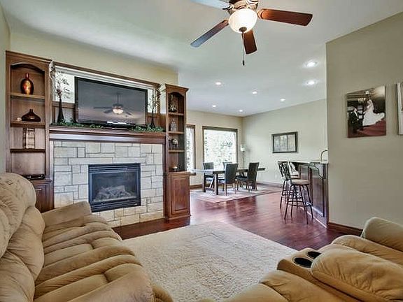 Terrific high-quality home with lots of upgrades on wooded lot surrounded by mature trees! This home has very low specials. Brick, stone and an extended front porch combine for great curb appeal, while the interior floor plan and finish contribute to a warm, inviting feel, with plenty of room for family and guests. Hardwood floors throughout main living areas! Maple & granite kitchen with stainless steel appliances! Landscaping includes irrigation well & sprinklers front & back!