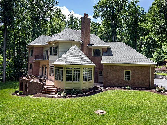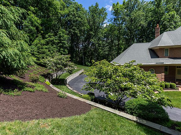 Designed by renowned architect Bruce Hutchison of Hutchison & Associates, this magnificent 6,608 sqft custom residence rests on 3.91 wooded acres featuring professional landscaping by award winning and nationally recognized Botanical Decorators, Inc. An aesthetically pleasing approach leads to this manor home adorned with oversized multi-tone Cushwa brick, hand forged wrought iron porches and deck railings, and 2 Blue stone patios flanking an all brick deck and loggia balanced with stone retaining walls. An elegant artisan leaded glass front door opens to reveal a stunning 2-story foyer with marble flooring and curved staircase, profile crown moldings, picture paneling, chair rail trim, maple hardwoods, a library complete with custom cherry built-ins and a bay window, a formal living brightened by a bay window and warmed by a limestone fireplace, followed by a raised formal dining room with a bay wall and serene wooded view. European inspired gourmet kitchen designed by award winning and nationally recognized Design Solutions, Inc features handcrafted o maple, cherry and glass cabinetry, granite counters, tumbled limestone backsplash, a 3 level island with an additional food prep sink, top-of-the-line appliances including a 48" 6-burner Viking range, a SubZero refrigerator, a Bosch dishwasher a KitchenAid wall oven, and a breakfast room with a French door walkout to the brick deck and an adjoining family room. With a defining architectural presence and superb attention to detail, the great room is centered by a brick fireplace and wood alcove surrounded by custom cabinetry and shelving, French doors opening to the deck, and a second set giving way to an amazing sunroom enhances by a 14' mahogany domed ceiling and cool ceramic tile flooring. Expansive owner's suite presents a 10' tray ceiling, 2 walk-in closets, a sitting room embellished by custom cabinetry designed by Linton Cabinetry, a walkout to a private balcony, and a luxury bath with dual vanities, a glass-enclosed shower, a platform soaking tub, and a custom artisan leaded glass picture window hand forged by Great Panes. Accommodating your desire for exercise and enjoyment is the lower level offering a rec room, a game room with an stylish custom wet bar built by Linton Cabinetry, a full bath, plentiful storage, and a home office with a walkout to the covered brick patio. 3-car garage with commercial grade flooring fulfills all of your automotive needs. Surveyed for a pool in backyard. This home is flawless and ready to fill with new memories!