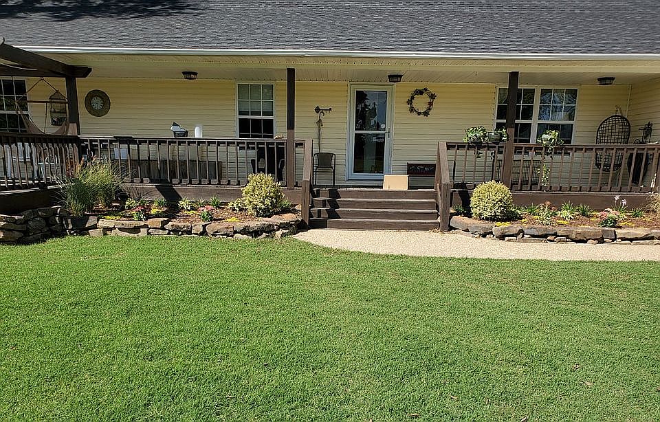 The shop is 40x40, all open with a closed off bathroom. It has three overhead doors with an operating door opener. Wood stove conveys. Outside of the shop are hookups for an RV. Other upgrades to the home: New roof with the back extended for a future grand back deck; wired for two fans and has recessed lighting. Front arbor deck with covered space for porch swings, 10 person concrete underground storm shelter, new septic tank, new HVAC, AT&T Alarm, underground electric dog fence, smart thermostat and keyless entry. New LVP flooring in all rooms, custom rock flower bed, custom millwork and now a fresh coat of paint. This home is a in a country setting only minutes to downtown Rogers, Beaver Lake and trails. The neighborhood is a tight knit, small community.