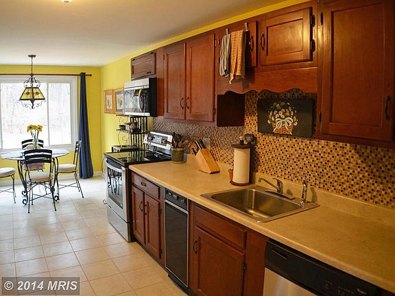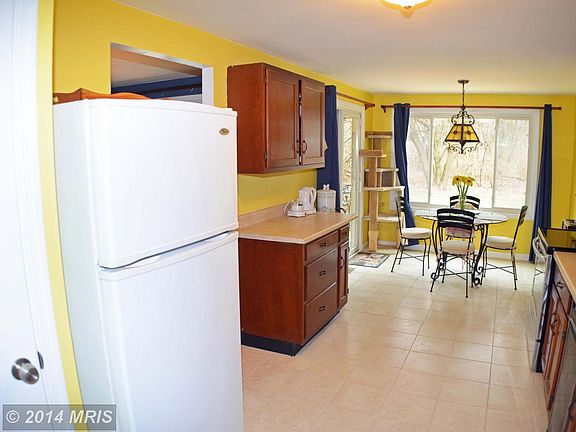 On a long driveway, offers a kitchen/breakfast room addition w/loads of windows, cherry cabinets w/ new counter tops(14), 12 x 12 ceramic tile floor(14), family room w/raised brick fireplace, dining room w/new sliding glass doors(14) to oversized deck, hardwood floors in the dining room & living room. There are also sliding glass doors off breakfast room to expansive back yard surrounded by trees.