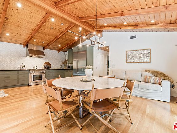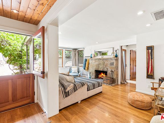 Escape the hustle and bustle of city life and discover a truly unique and peaceful retreat nestled in a nature-filled haven near Los Angeles. This rustic, bohemian home and meticulously landscaped property have undergone a thoughtful gut renovation, resulting in a joyful blend of design and comfort. The master bedroom is a sanctuary of natural light and tranquility, complemented by blackout curtains that ensure restful sleep whenever you desire. The second bedroom is reminiscent of an upscale tent from an African safari adorned with layered rugs and exotic decor. Every detail of this home has been carefully curated, from the authentic Moroccan rug that graces the living room to an array of handpicked vintage pieces and fine art. The inviting pool, with its lake-like waters, invites you to unwind, offering ample space around its perimeter for relaxation. The open kitchen and dining area boasts a high-pitched ceiling, creating a spacious ambiance. With sliding doors that seamlessly merge indoor and outdoor spaces, the warm and creative materials used throughout are sure to capture your attention. Equipped with top-of-the-line Thermador appliances and cookware, this kitchen is a haven for culinary enthusiasts. Don't miss the opportunity to experience this one-of-a-kind retreat where rustic charm meets modern luxury, offering a harmonious blend of nature, comfort, and artistic design.
