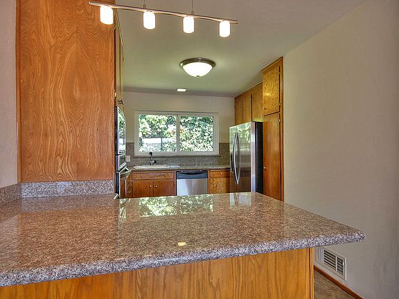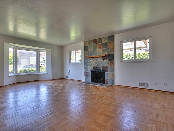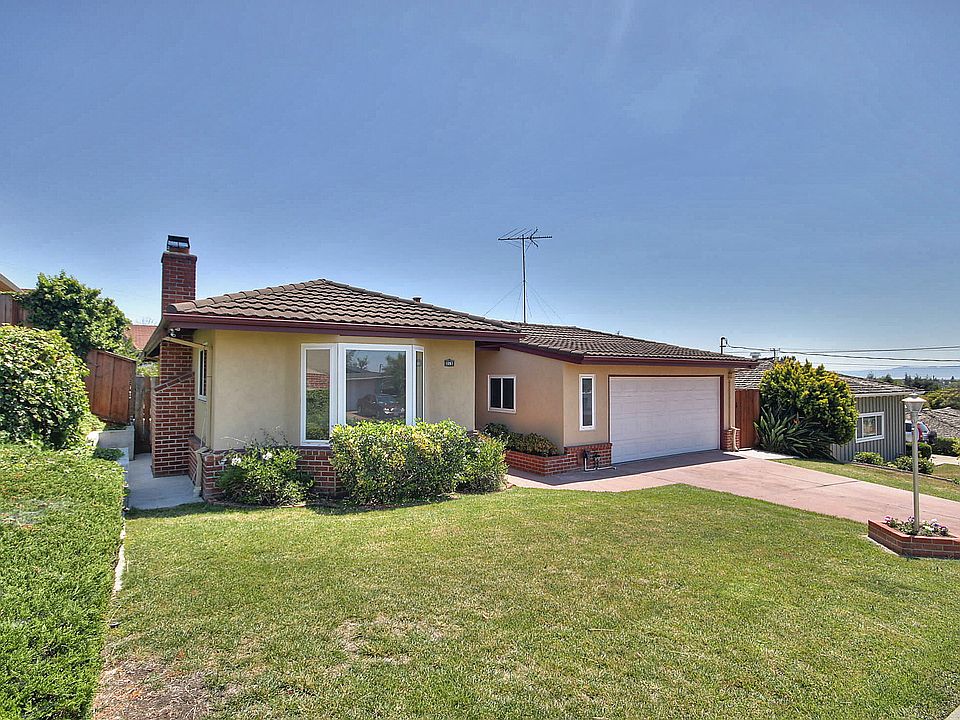 Set your sights high in this well appointed Bay-o-vista home. Elegantly simple mid-century ranch architecture. Natural beauty of oak and parquet flooring. Spacious living room with impressive floor-to-ceiling slate tile fireplace and lustrous parquet flooring. Picture windowed bay window with filtered downtown and bay views. Step saving modern electric kitchen – a pleasure to cook in. Easy to keep, gleaming stainless steel appliances add practical beauty. Kenmore electric self-cleaning built in oven and microwave. GE electric built-in four burner cooktop. Durable granite countertops and numerous cabinets. Stainless steel vented hood with adjustable fan and light. Guests can visit but stay out of the way at the breakfast bar with newly installed hanging light fixture. Family room with newly installed easy care vinyl flooring. Sliding glass door to sun-splashed patio area. Perfect for summer barbeques. Bright remodeled hall bathroom. Granite counter on newly installed wood vanity with lots of storage. Beveled glass recessed mirrored medicine cabinet. 12” porcelain tile flooring with tile accent border. Tiled walls over shower/bath area with glass doors. Master bedroom tucked away in back of the house with partial bay view. Beautifully remodeled master bathroom with manufactured stone counter over vanity. Chrome hardware and faucet. Floor-to-ceiling tile shower with frameless shower door. Dual flo Glacier Bay commode. Well lighted walk in closet. Attached two car garage with insulated door and built-in storage cabinets and storage loft. Many other recent improvements include replaced main sewer line, newer drainage line from backyard to street. Replaced retaining wall with drainage. Recently replaced furnace. Energy efficient dual paned windows. Refinished hardwood flooring. Freshly painted interior. Wind and weather defying metal roof. Insulation in attic.