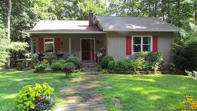 his is an adorable 2 bedroom home in a private setting. It has a detached workshop w/ 2 car covered carport. The grounds are well maintained w/ numerous flower beds and a fire pit. The home offers an updated kitchen, hardwood floors thru out. The downstairs is divided into 2 areas with washer and dryer utility room on one side with a wood burning stove that heats the upstairs & the second side has an open room that can be used for a sundry of uses also has a 1/2 bath. Covered deck off kitchen