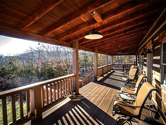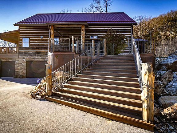 HERMANN. 3.5MI W OF TOWN, LESS THAN 2 MI TO VILLAGE MARKET. Spectacular views in every direction from this unique home featuring a huge wrap-around porch providing dining/living/entertaining space. Inside, you're surrounded by beautiful log walls, cathedral ceiling, wood floors, floor-to-ceiling stone masonry, Rumsford style fireplace, butcher block island kitchen w/Wolff gas oven/cooktop, 2 plus bedrooms, 2 new full baths with heated slate floors, an expansive loft with sleeping areas, & a screened-in porch leading to an outside firepit gathering area. Expansive natural landscaping plus terracing put in place to drain rainfall off to each side into natural stream beds. Hand forged wrought iron stair railings inside & out expand the grandeur of this home. Come view this special home and natural setting to feel the beauty. Furnishings negotiable. Additional Rooms: Sun Room
