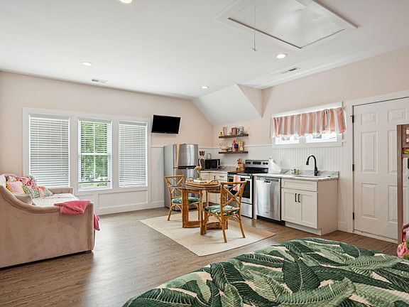 This stunning 3-story home is in an amazing location. Near DI schools, play grounds, Smythe lake, and the library. Corner lot that offers plenty of space and beautiful features. With 5 total bedrooms and total 4.5 bathrooms, there's room for everyone! You can start your day with a cup of coffee or enjoy a glass of sweet tea on the cozy covered porch or covered balcony. Inside, the home features hardwood flooring throughout, along with gorgeous light fixtures that add a touch of elegance. The spacious dining room features formal moldings, perfect for family dinners or special occasions. The lovely kitchen includes beautiful cabinets, and Sub-Zero and Cafe appliances. You'll also find built-in shelving throughout the home, providing plenty of storage and display space.The suite, located on the second floor, comes with a luxurious bathroom that includes a separate tub and shower, plus double vanities. There are also two additional bedrooms on this floor, sharing a Jack & Jill bathroom. The third floor features a bonus room, ideal for a playroom or extra living space, along with the fourth bedroom and a full bath.The fifth bedroom is a special feature of this property; located above the 2-car garage, it is 506 aqft to make the total sqft 3817 and has its own laundry area and kitchenette, making it perfect as a guest room or even a small apartment for additional income. Out back, the screened porch with a fireplace and ceiling fan is perfect for relaxing in any weather. Just outside the porch, there's a built-in grill, making outdoor cooking easy and fun. The backyard is fenced and leveled, providing a safe and spacious area for entertaining guests or spending quality time with loved ones. Tons of storage and closet space. This home has everything you need and more!