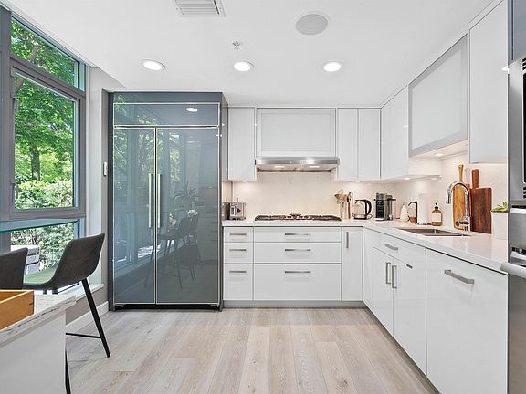 Beautifully & meticulously renovated, designer-inspired city townhouse in Coal Harbour with no compromises. This bright corner unit offers extra windows, a private street entrance (no elevators!), and an attached double garage w/ EV charging + ample storage. Enjoy two sun-drenched outdoor spaces, including a rooftop deck with mountain and city views. The stunning kitchen features Gaggenau, Miele & sub-zero appliances and custom cabinetry. Gas fireplace, A/C, automatic blinds, designer lighting, and Sonos throughout. Offering 3 bedrooms + flex and convenient mudroom. Luxurious primary with walk-in closet and dual ensuites, Nu heat floors. Steps to seawall, enjoy first-class building amenities: fitness centre, indoor pool, steam, sauna, and the best concierge in the city. 1st class living!