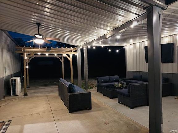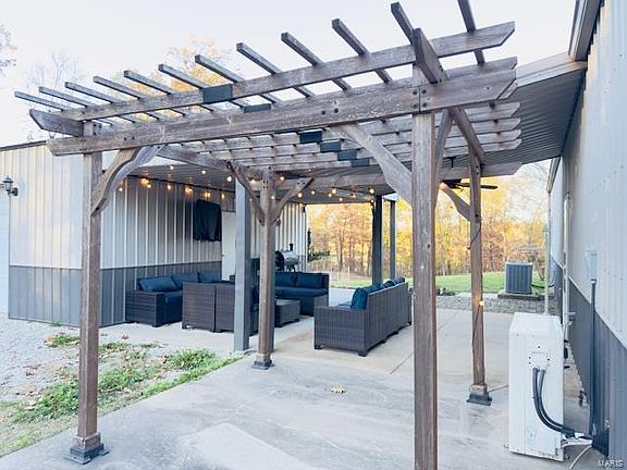 Yes! It’s a SHOUSE! And it’s nestled on nearly 4 acres surrounded by woods! This modern design with black glass doors and large open rooms mimics the spacious feel inside and out! The house includes a primary suite and 1/2 bath for entertaining. Plenty of room for your vehicles and hobbies with a 2 car garage with a FULL BATH plus a 1 car bay for additional storage. Enjoy the peaceful country from your covered patio wired for TV and the pergola stays! And when you need to get to town you are 5 minutes away!
