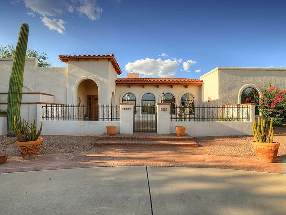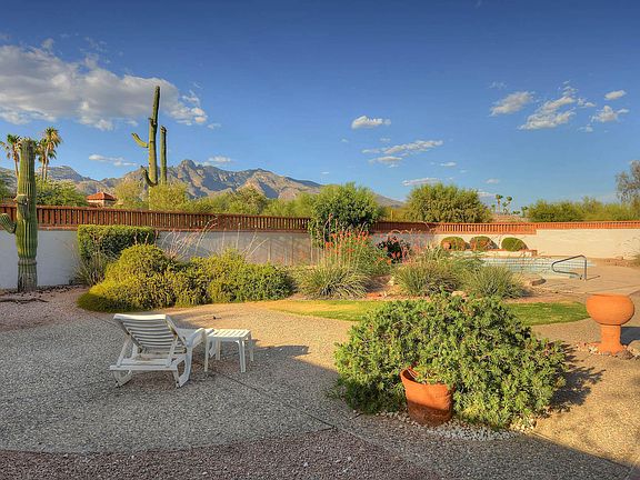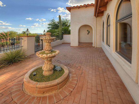 Well designed southwestern style home built by Frana Worden. Step down living room shares hacienda style double fireplace with family room. Kitchen features oak cabinets, black appliances & breakfast table with views. Generous master suite has cozy fireplace & large walk-in closet. Two ample guest bedroom and extra room off garage doubles as work out or office. Extended patio in backyard features built-in BBQ & sparkling pool. Private corner lot features beautiful Catalina Mountain Views! Plenty of storage with extra RV garage in ever popular Shadow Hills!
