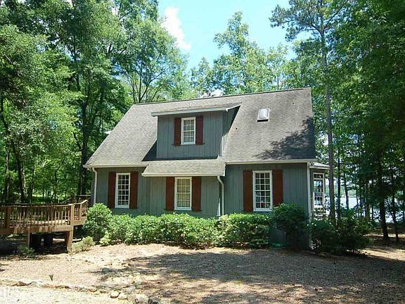 Loving That "Lakey" Style Lakefront Home On Lake Oconee! This is the home everyone wants for lakefront living with rustictouches, open floor plan, Vaulted Great Room with fireplace/lots of glass french doors/hardwood floors, Kitchen with granitecounters/Breakfast Bar/Range/Refrigerator/Dishwasher/Microwave/hardwood floor/dining area with bay window, Private masterbedroom with ensuite bathroom plus an office room and small loft. Full finished daylight basement with 3 french doors, carpet,walkout to covered patio. Covered porch on main level with 3 fans plus a fireplace for cool nights! The home sits on a large 1.41acre lot with a driveway that winds through the trees to your getaway place from the world with 239 feet of water frontage and amax slip dock with covered boatlift and seawall. Being sold furnished and the deck boat is available separately. New exterior paint.Faces East. Hurry!