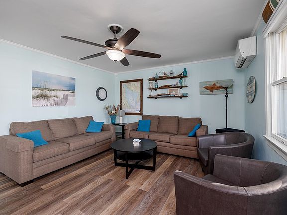 Turnkey Village Greene Twin with excellent rental history. This home has been upgraded and updated! The eat in kitchen offers stainless steel appliances, crsip white shaker cabinetry, tiled backsplash, and granite countertops. Updated flooring runs throughout. Additional features a recently updated bathroom with tiled shower surround. Also, there are energy efficient mini split heating and cooling units. Exterior features included an outdoor shower and a 1.5 car detached garage and a vinyl privacy fence. Offered fully furnished!