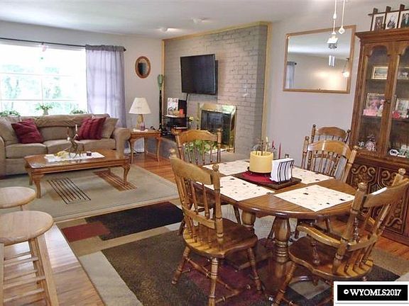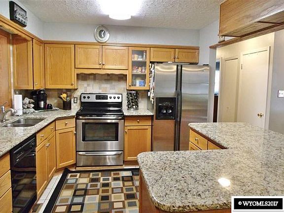 Call Sheila Delach with Good as Sold, Inc. today for your private tour. (307) 377-9232. Wait until you see this wonderful home with steel siding, brick and 1 year old roof. Home features 4 bedrooms, 1.75 baths and a 2 car garage. Inviting front porch and beautiful landscaped yard with mature trees, garden area, deck and shed. Home also has an updated kitchen and newer main bath, beautiful hardwood floors, main level family room with vaulted ceilings.
