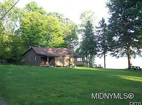 195' Oneida Lakefront, 2 houses, 1.5 acres and a great big yard. A 1 bedroom guest house is on the property, use for friends/relatives or rent it out! Masterbath has been started. Must see to appreciate the serenity of Oneida Lake. AMAZING VIEWS! Garage/barn on the property is unsafe DO NOT ENTER.